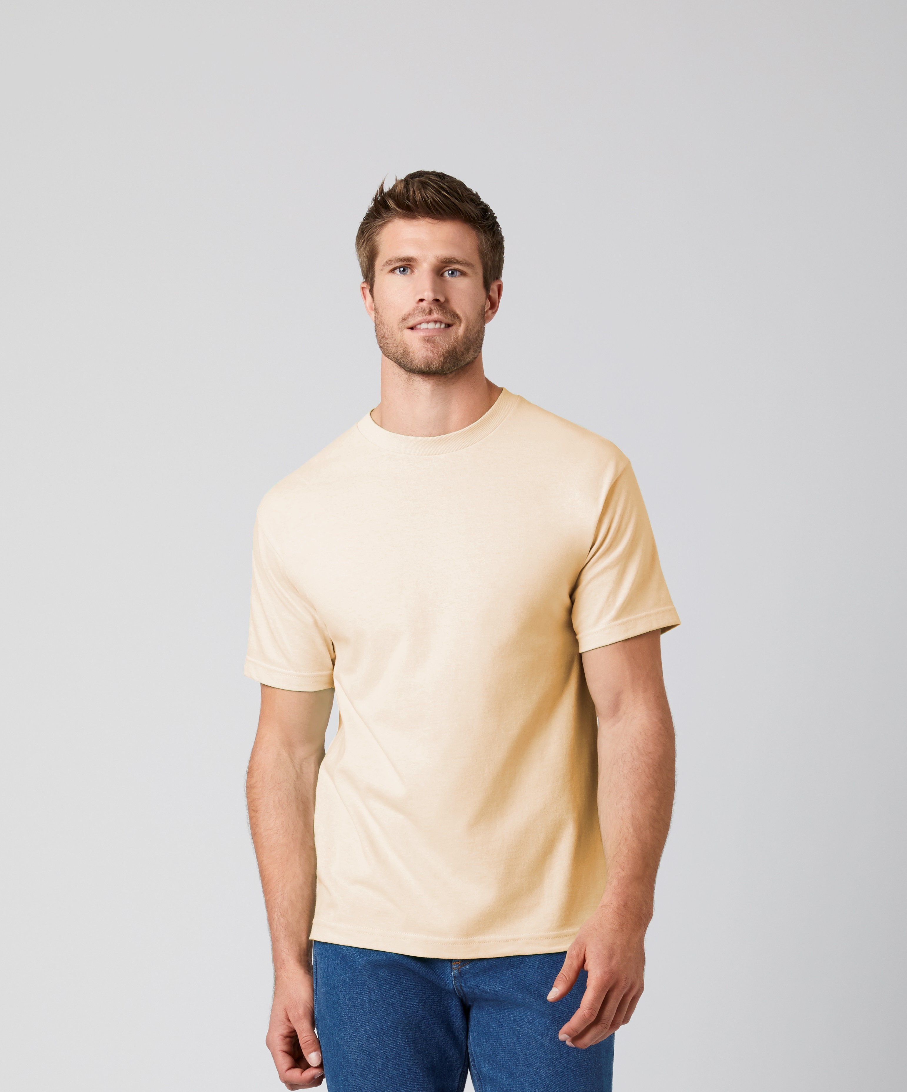 - 203 g/m² (193 g/m² in White) 100% Cotton preshrunk jersey knit