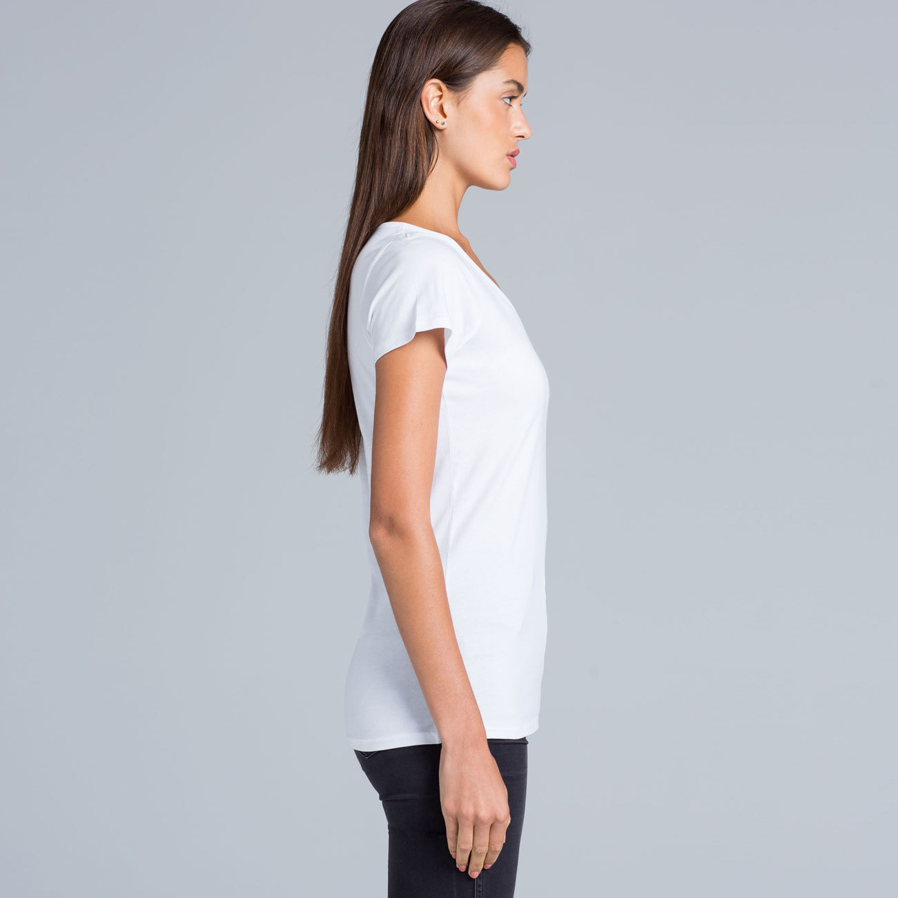 Neck ribbing, side seamed, shoulder to shoulder tape, double needle hems, preshrunk to minimise shrinkage